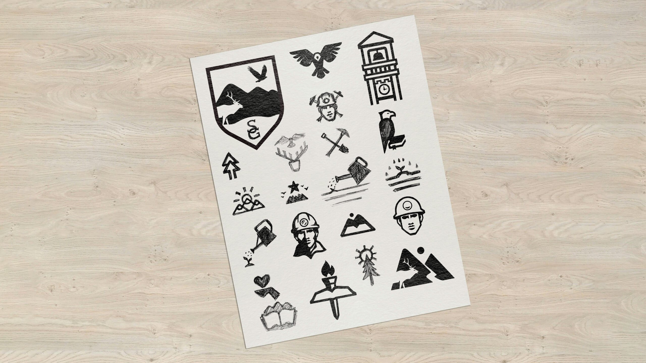 Our first exercise for the Southern Gap team was to reflect on the key identifiers of the county from both a historical and social perspective. By examining the county’s history, we found that the mining industry was a great representation of the resilient nature of the community. As the county grows, looking at educational symbols and images of soaring eagles could inspire the stakeholders’ vision for the future.